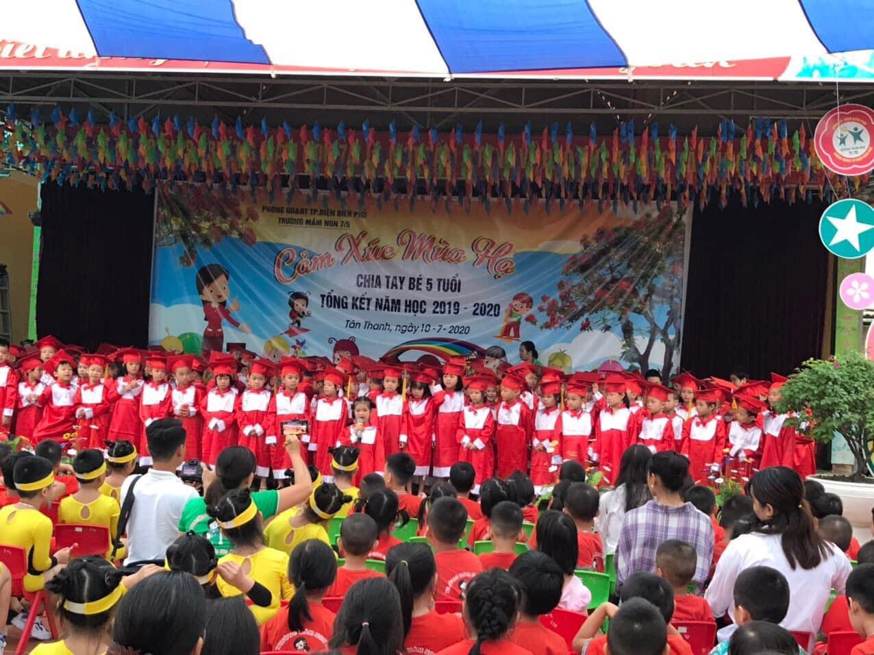 Để ghi lại dấu ấn quan trọng này với các bé, giúp các bé chuẩn bị tốt về tâm thế bước vào môi trường học tập mới, cũng như tuyên truyền trong xã hội về sự quan tâm của cả cộng đồng với sự nghiệp giáo dục thế hệ mầm non tương lai của đất nước, sáng ngày 10/7/2019 trường mầm non 7/5 Thành phố Điện Biên Phủ long trọng tổ chức lễ tổng kết năm học 2019-2020 và chia tay các bé lớp 5 tuổi.