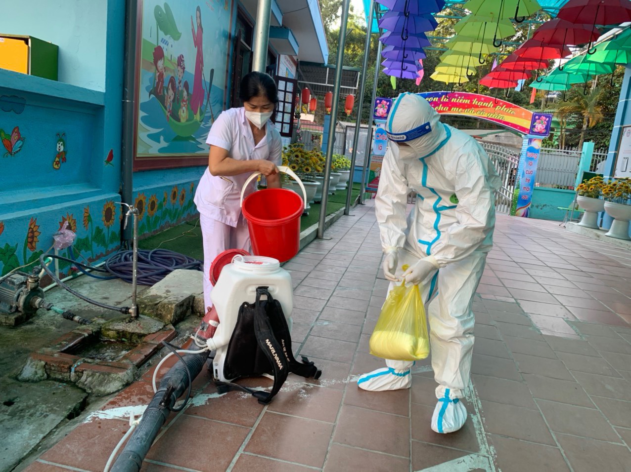 Ngày 22/11/2021 Đội phòng, chống dịch COVID-19 Trung tâm y tế Thành phố Điện Biên Phủ do Bác sỹ Nguyễn Hoàng Long cùng các đ/c trong đội phòng, chống bệnh COVID-19 đã thực hiện công tác phun thuốc khử khuẩn tất cả các đồ dùng, đồ chơi trong và ngoài lớp học tại trường 7/5 và điểm trường Tân thanh.Trước. BGH nhà trường đã quyết liệt chỉ đạo Cán bộ giáo viên,nhân viên nhà trường tuyệt đối thực hiện nghiêm túc và hiệu quả công tác phòng chống dịch bệnh COVID-19.
