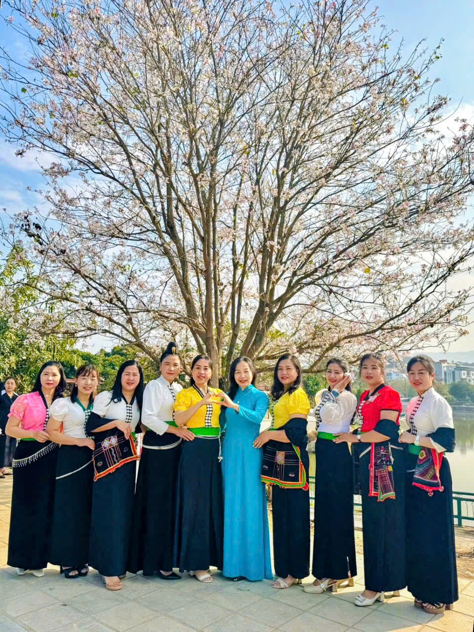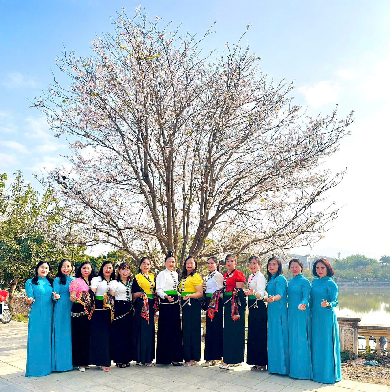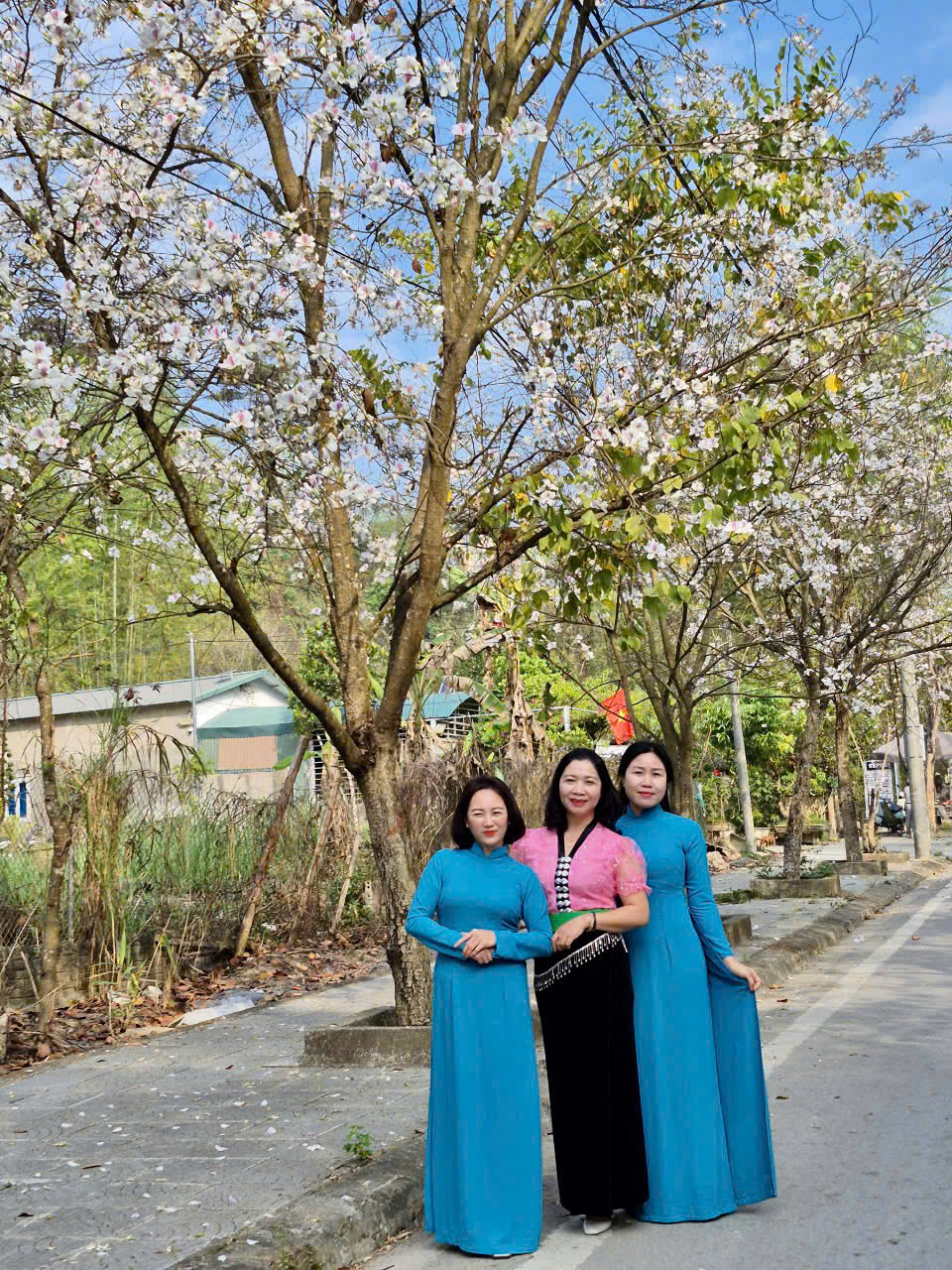 Không chỉ là những người "đưa đò" thầm lặng, các cô giáo mầm non hôm nay đã trở thành những "Đại sứ du lịch" thực thụ. Giữa rừng ban trắng muốt, hình ảnh các cô dịu dàng trong tà áo dài truyền thống hòa quyện cùng vẻ đẹp rạng ngời của bộ váy áo cóm đặc trưng của người Phụ nữ dân tộc Thái đã tạo nên một bức tranh văn hóa tuyệt mỹ.