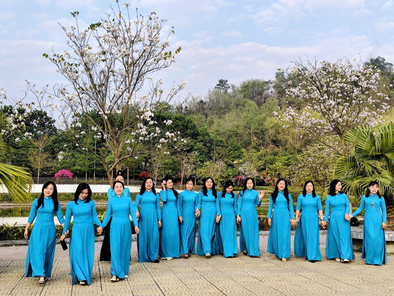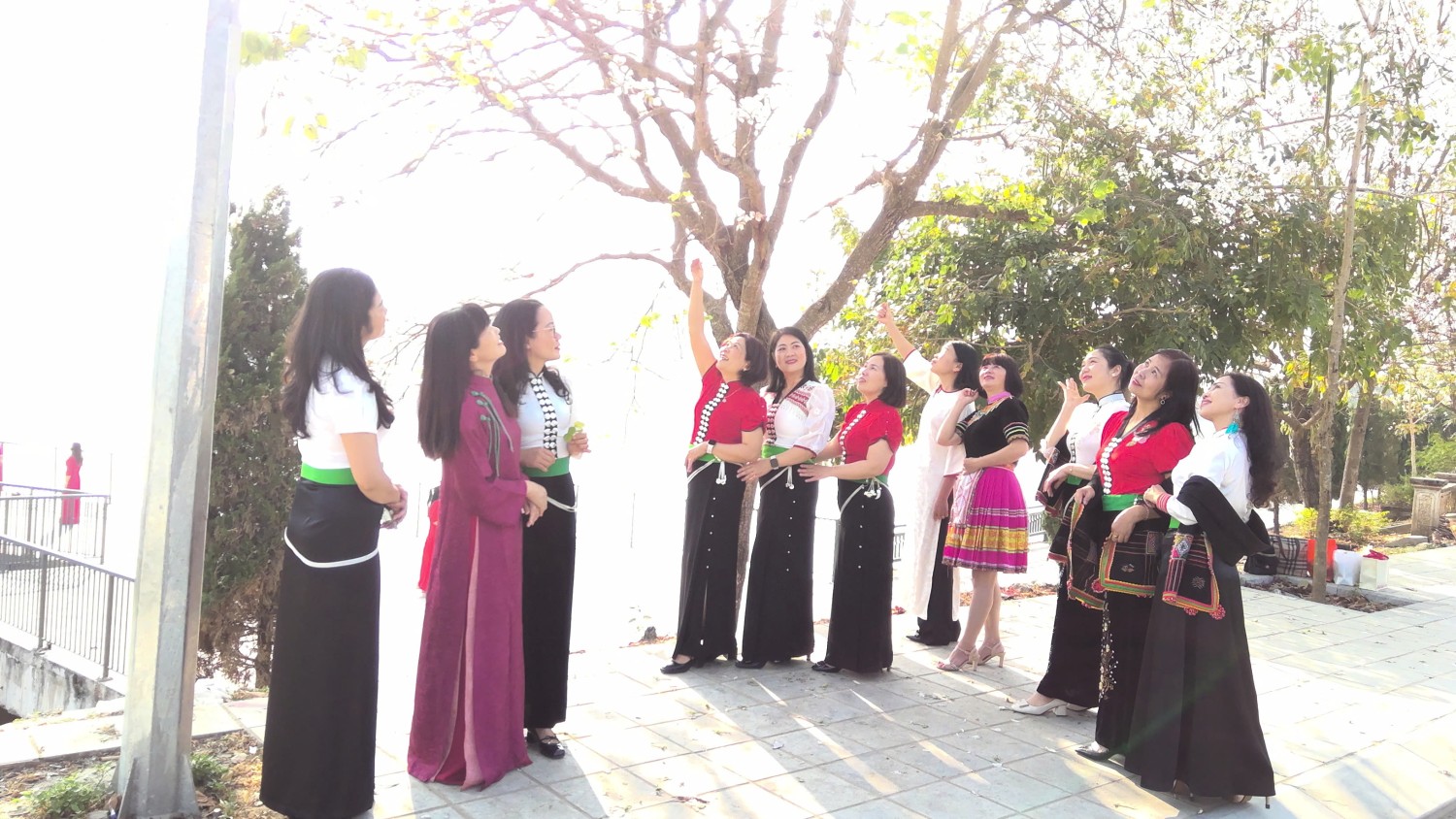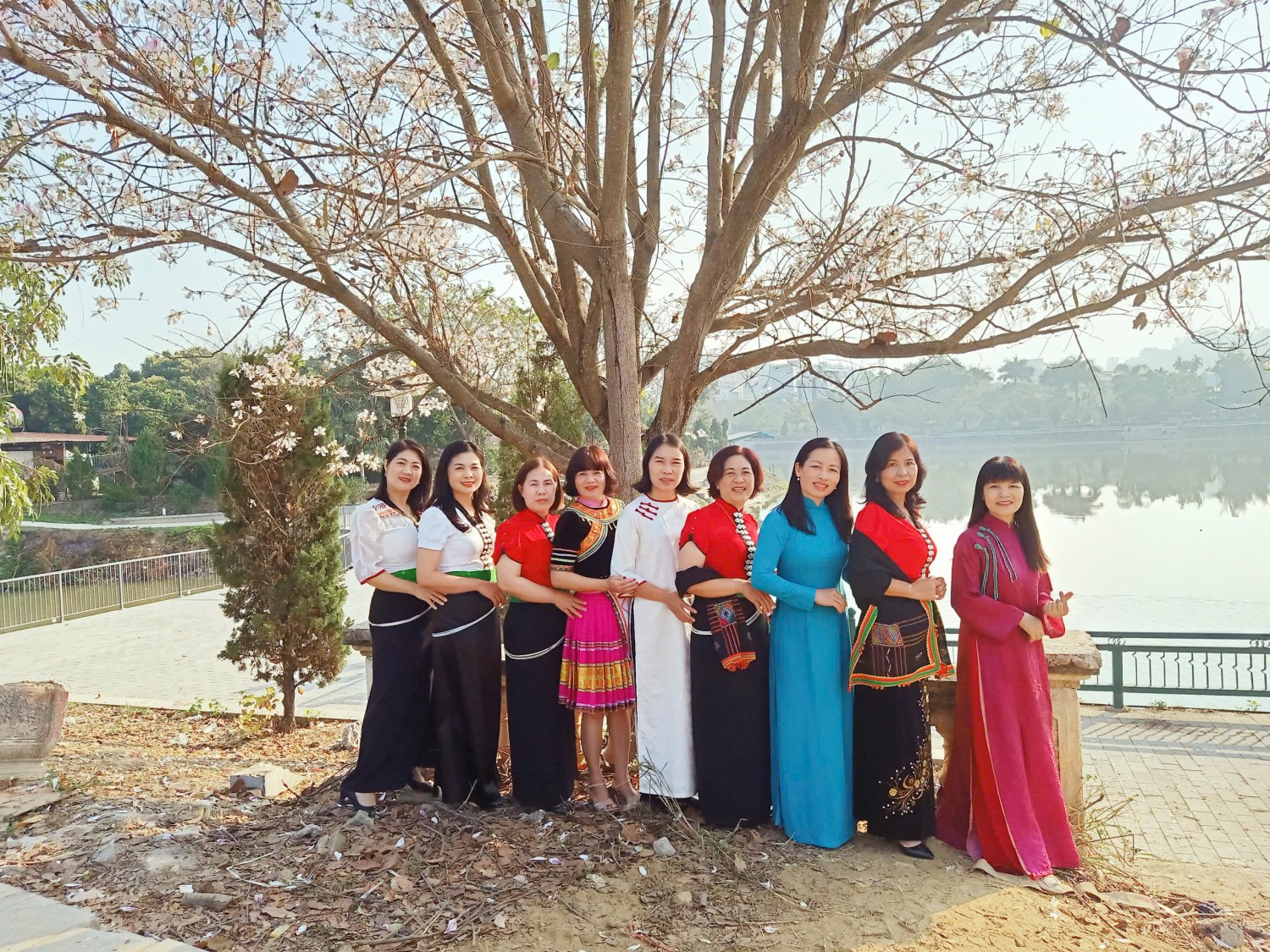 Không chỉ là những người "đưa đò" thầm lặng, các cô giáo mầm non hôm nay đã trở thành những "Đại sứ du lịch" thực thụ. Giữa rừng ban trắng muốt, hình ảnh các cô dịu dàng trong tà áo dài truyền thống hòa quyện cùng vẻ đẹp rạng ngời của bộ váy áo cóm đặc trưng của người Phụ nữ dân tộc Thái đã tạo nên một bức tranh văn hóa tuyệt mỹ.
