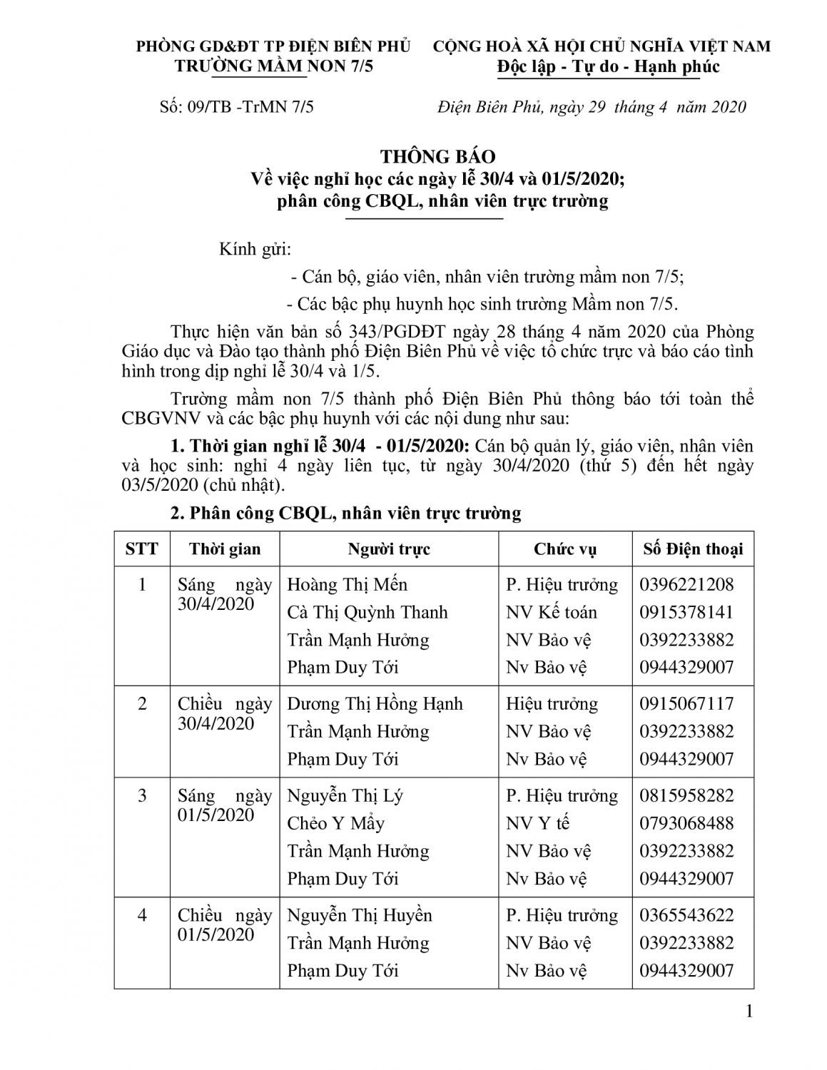 Nguồn tin: Hiệu trưởng Dương Thị Hồng Hạnh Trường mầm non 7/5: