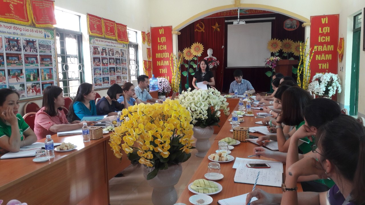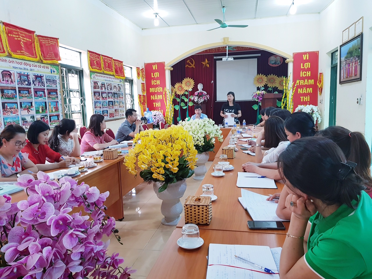 Tham dự buổi làm việc tại nhà trường có các đồng chí Nguyễn Tuấn Anh – Phó Trưởng phòng khảo thí và quản lý chất lượng giáo dục Sở Giáo dục Đào tạo – Phó trưởng đoàn kiểm tra đánh giá; đồng chí Nguyễn Hồng Ngọc , Đ/c Bùi Thị Hiền– Phó trưởng phòng Giáo dục và Đào tạo thành phố Điện Biên Phủ; các đồng chí là thành viên đoàn kiểm tra đành giá và đại diện cán bộ Quản lý, giáo viên trong nhà trường.