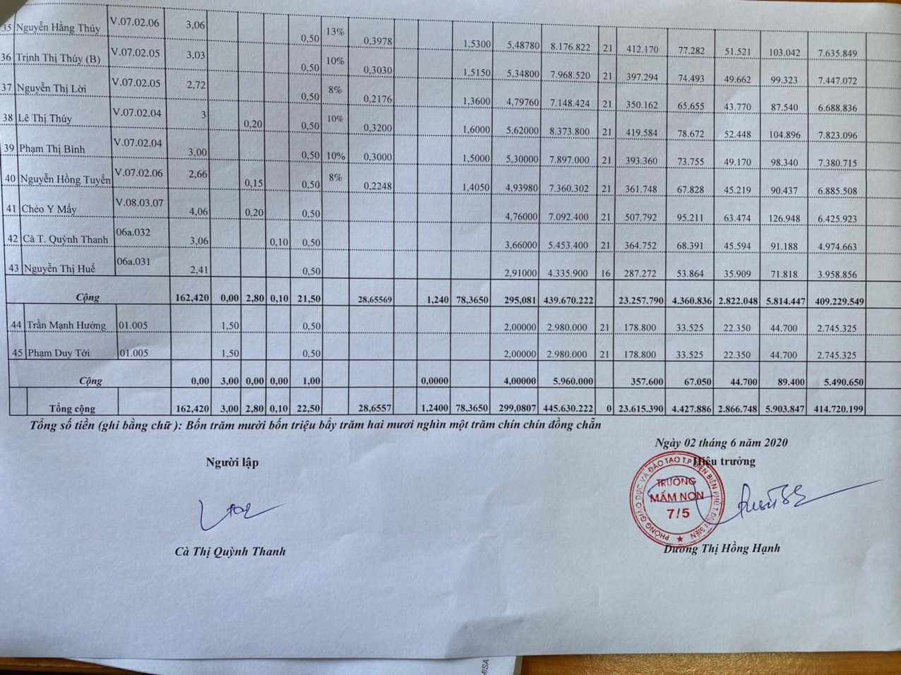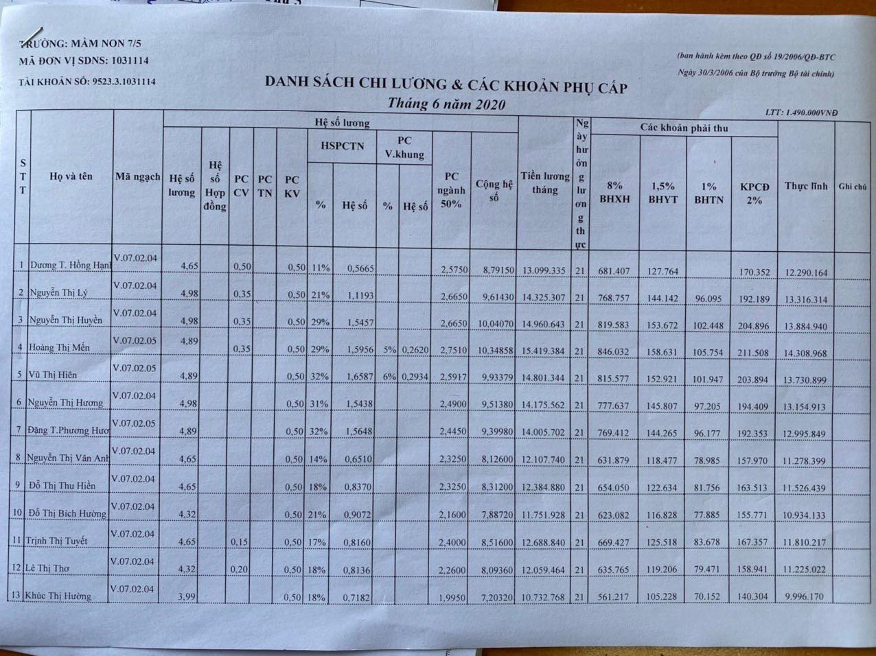 TRƯỜNG MẦM NON 7/5 THỰC HIỆN CÔNG KHAI CHẾ ĐỘ LƯƠNG THÁNG 6-2020