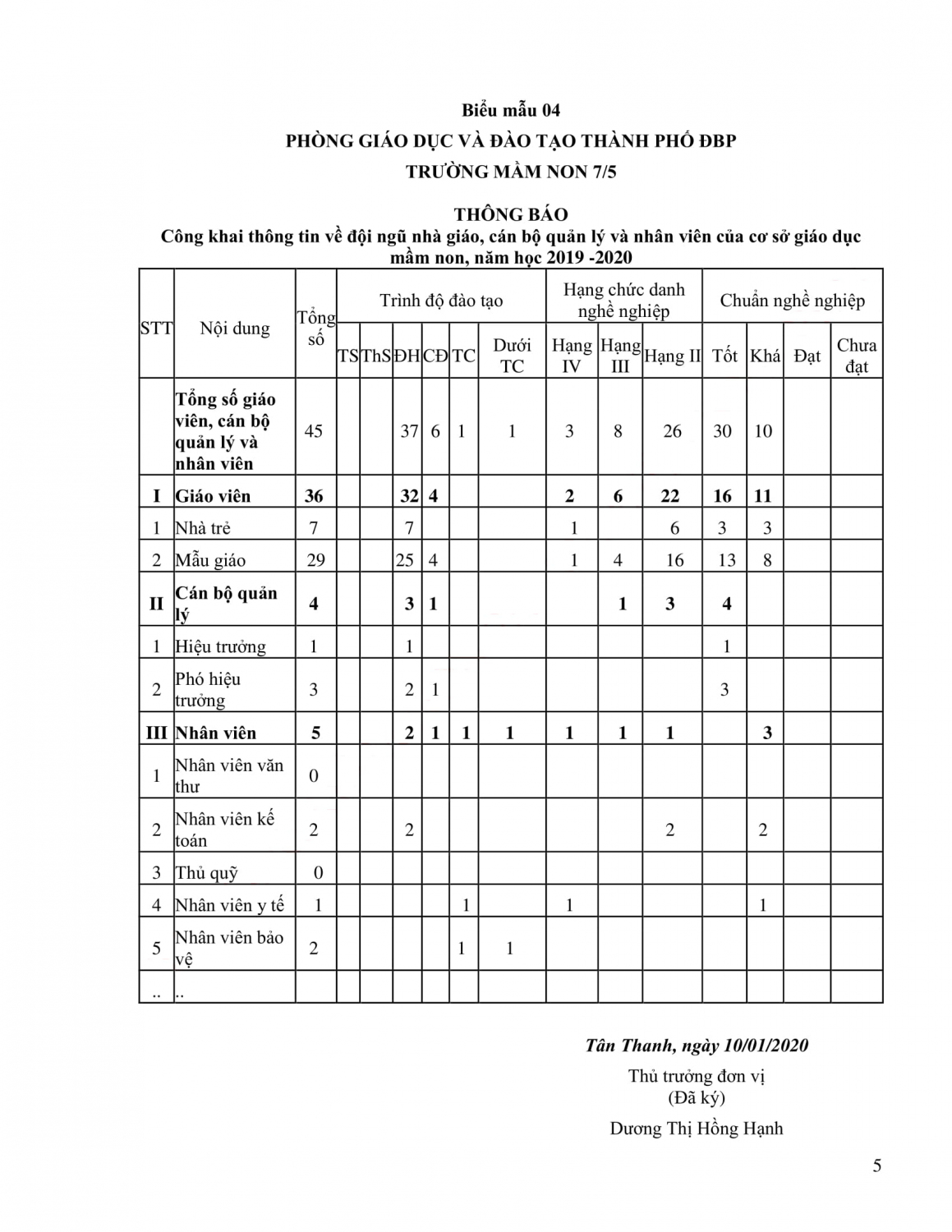 Thông báo Cam kết chất lượng giáo dục của cơ sở giáo dục mầm non, năm học 2019 -2020