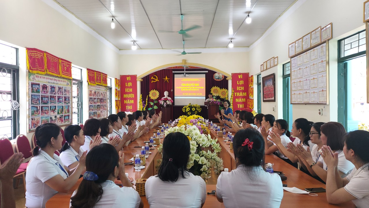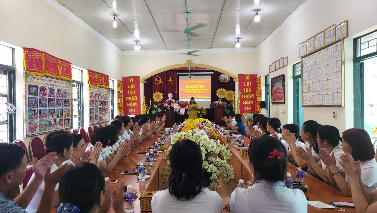 Đồng chí Bùi Thị Hiền Phó Bí thư Chi bộ - Phó Trưởng Phòng GD & ĐT trao quyết định, tặng hoa chúc mừng và phát biểu giao nhiệm vụ cho đồng chí Nguyễn Thị Phúc tân Hiệu trưởng trường mầm non 7/5 tiếp tục phát huy vai trò trách nhiệm và nâng cao năng lực quản lý của mình để lãnh đạo tập thể nhà trường vững bước đi lên. Bên cạnh đó tập thể cán bộ giáo viên nhà trường tiếp tục phát huy trí tuệ tập thể, cán bộ công chức, viên chức và người lao động tạo điều kiện, giúp đỡ đồng chí Nguyễn Thị Phúc trên cương vị công tác mới hoàn thành tốt nhiệm vụ được các cấptrên giao, góp phần xây dựng trường mầm non 7/5 vững mạnh xứng đáng là cánh chim đầu đàn của cấp học mầm non Thành phố.