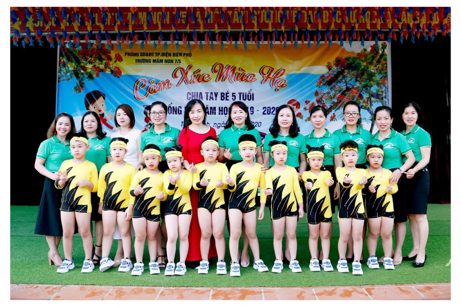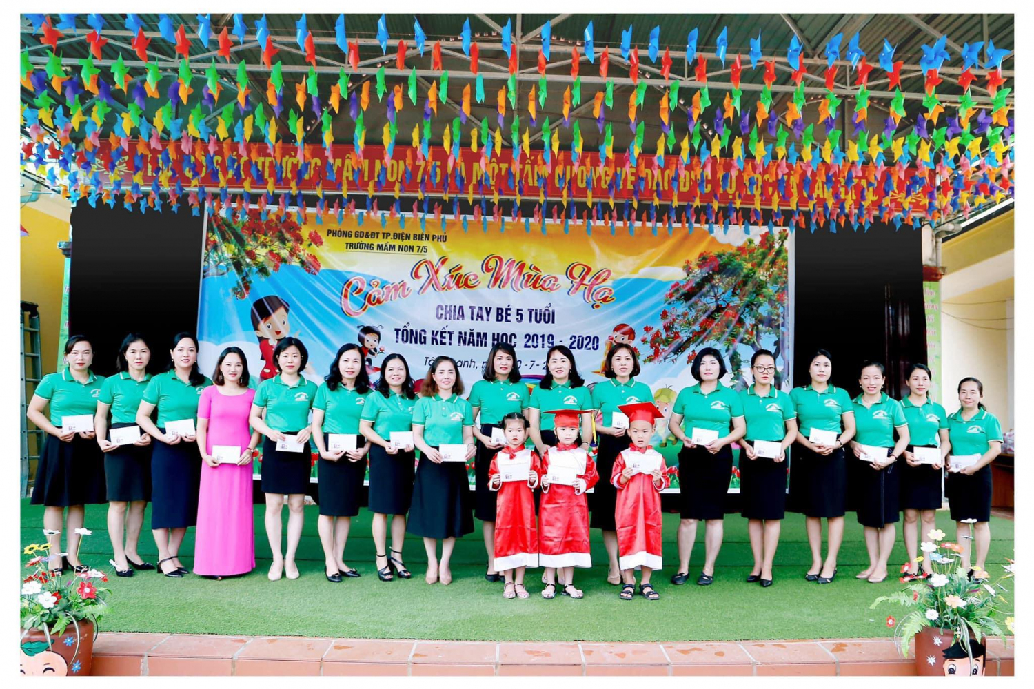 Để ghi lại dấu ấn quan trọng này với các bé, giúp các bé chuẩn bị tốt về tâm thế bước vào môi trường học tập mới, cũng như tuyên truyền trong xã hội về sự quan tâm của cả cộng đồng với sự nghiệp giáo dục thế hệ mầm non tương lai của đất nước, sáng ngày 10/7/2019 trường mầm non 7/5 Thành phố Điện Biên Phủ long trọng tổ chức lễ tổng kết năm học 2019-2020 và chia tay các bé lớp 5 tuổi.