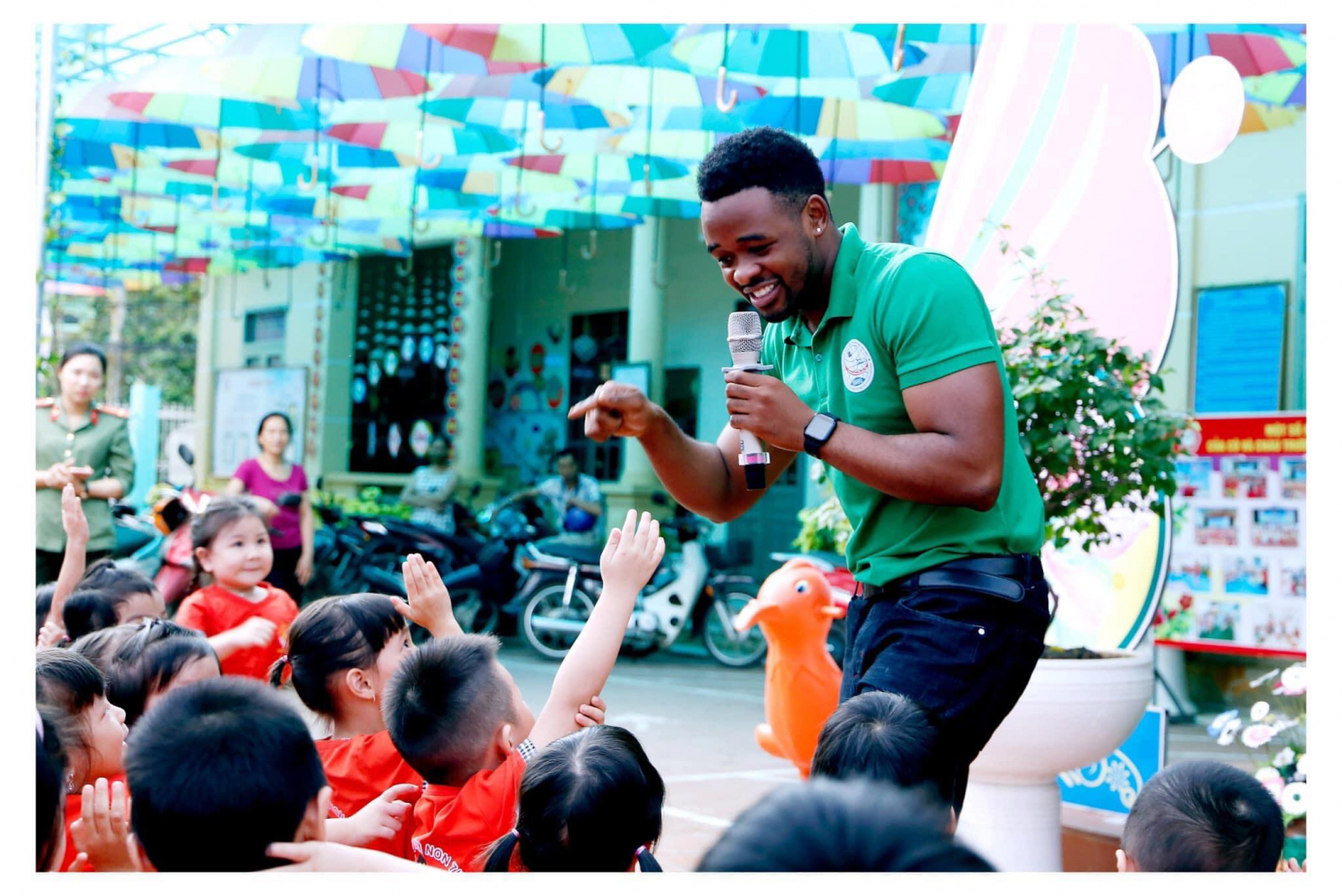 Đến dự với buổi lễ có Đại diện hội cha mẹ học sinh nhà trường cùng toàn thể cán bộ, giáo viên, nhân viên trong nhà trường và trên 600 các bé đến từ các khối lớp nhà trẻ và mẫu giáo.