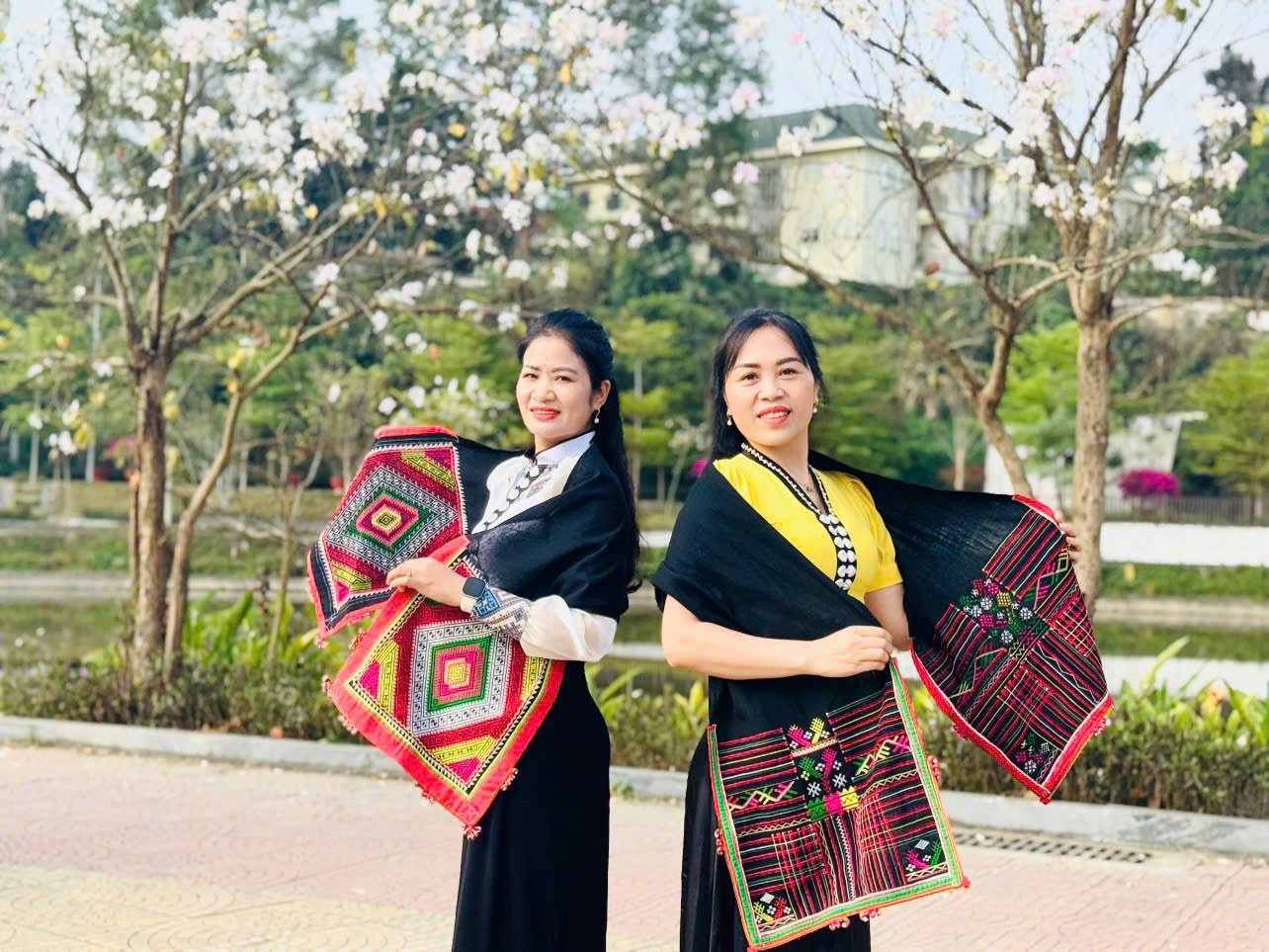 Không chỉ là những người "đưa đò" thầm lặng, các cô giáo mầm non hôm nay đã trở thành những "Đại sứ du lịch" thực thụ. Giữa rừng ban trắng muốt, hình ảnh các cô dịu dàng trong tà áo dài truyền thống hòa quyện cùng vẻ đẹp rạng ngời của bộ váy áo cóm đặc trưng của người Phụ nữ dân tộc Thái đã tạo nên một bức tranh văn hóa tuyệt mỹ.