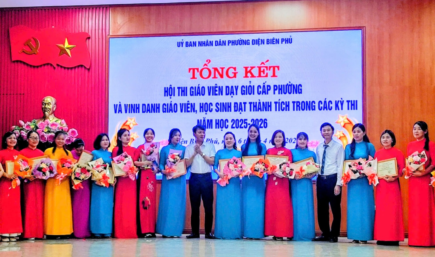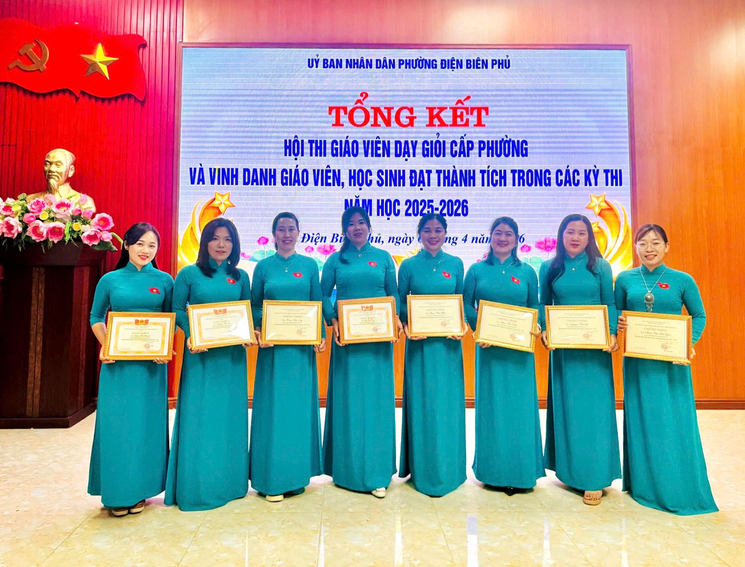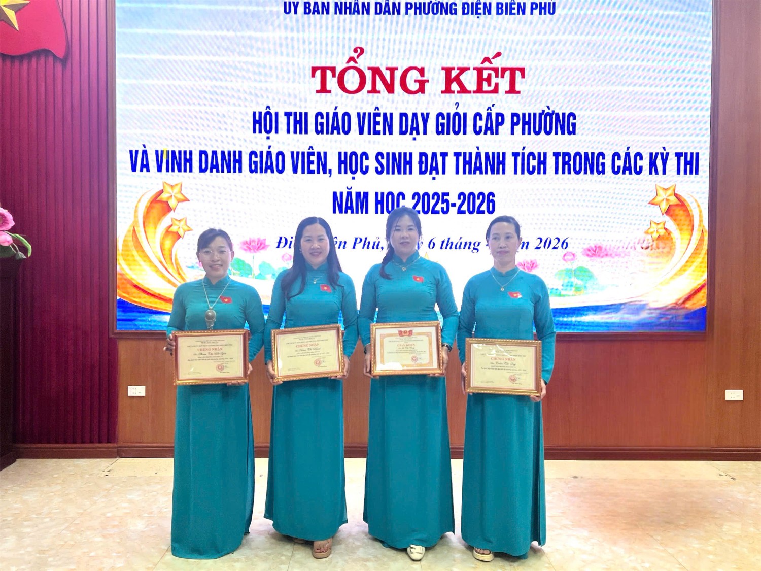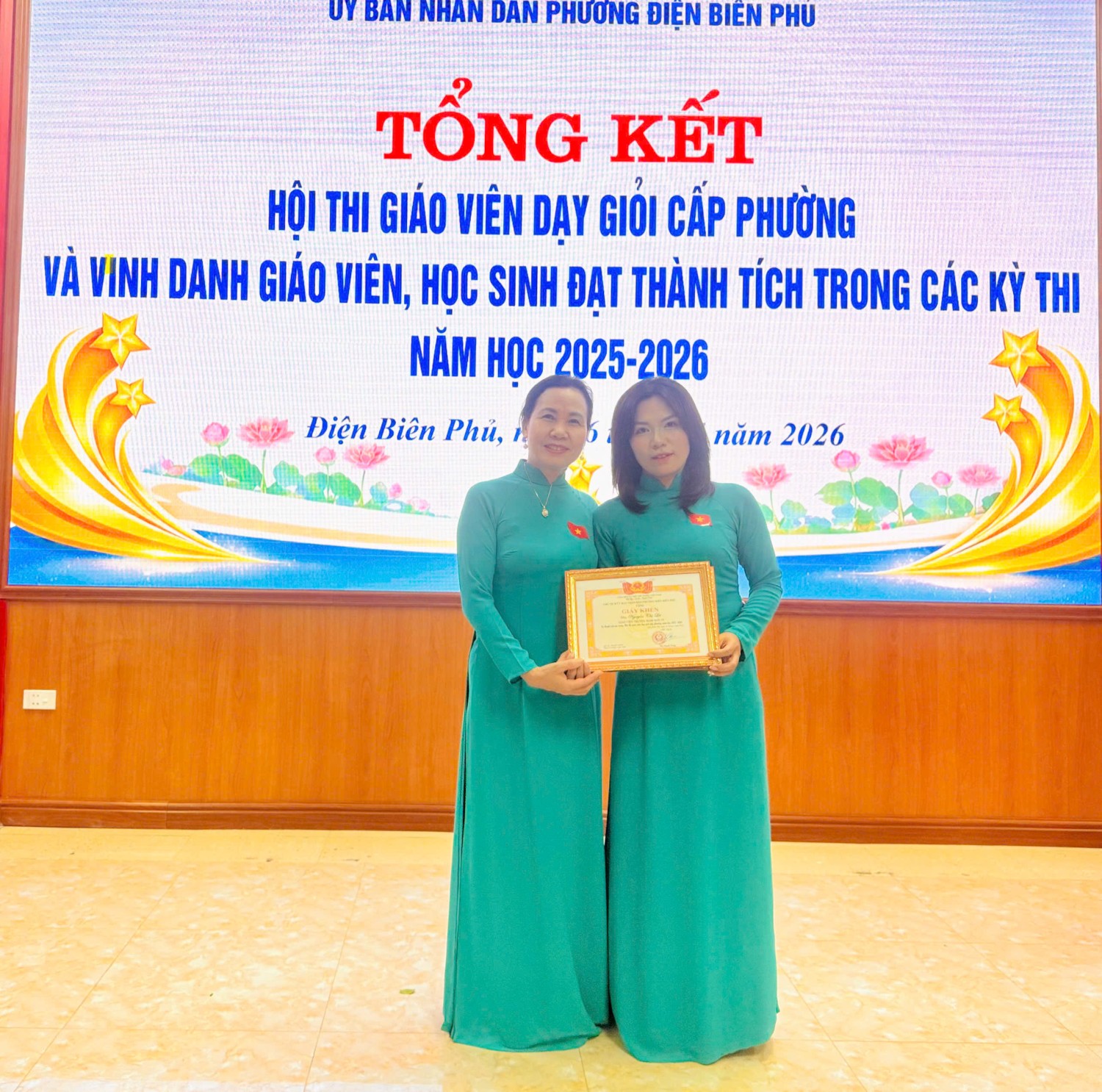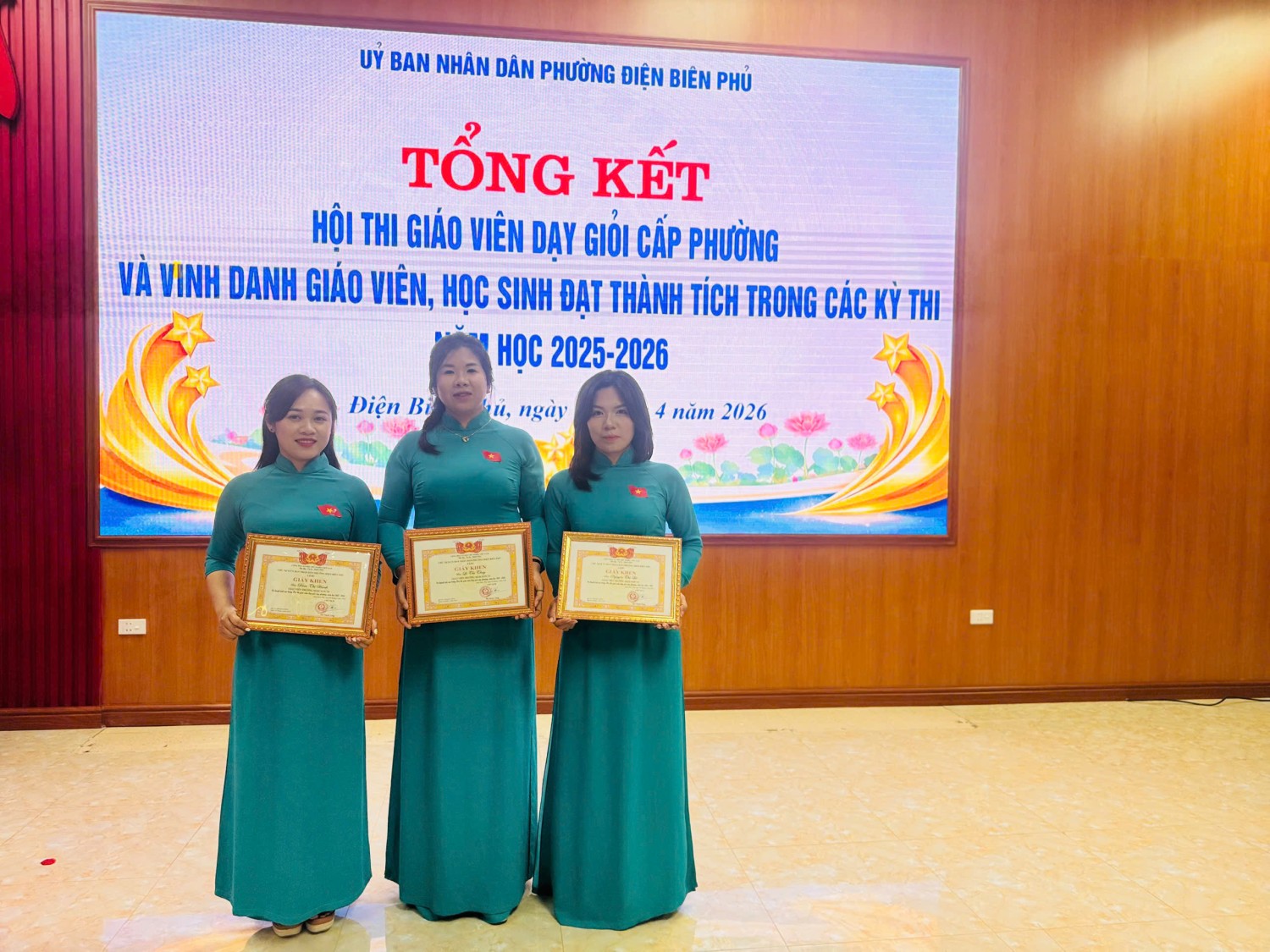 Tham gia Hội thi nhà trường có 10 giáo viên, thật vinh dự khi 100% giáo viên dự thi đều đạt danh hiệu Giáo viên dạy giỏi cấp phường. Đặc biệt, có 03 giáo viên đạt thành tích xuất sắc được Chủ tịch UBND phường Điện Biên Phủ tặng Giấy khen 02 giáo viên được Công ty trách nhiệm hữu hạn Giáo dục Đào tạo Quốc tế Việt - Mỹ Điện Biên tặng quà. Đây không chỉ là kết quả của các cô giáo mà còn khẳng định năng lực chuyên môn vững vàng và tinh thần đổi mới, sáng tạo trong giảng dạy của các cô.