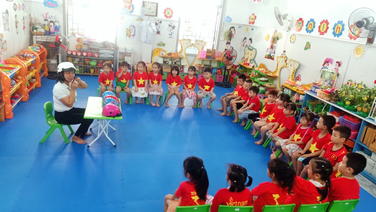 Một số hình ảnh cô giáo dạy trẻ đội mũ bảo hiểm