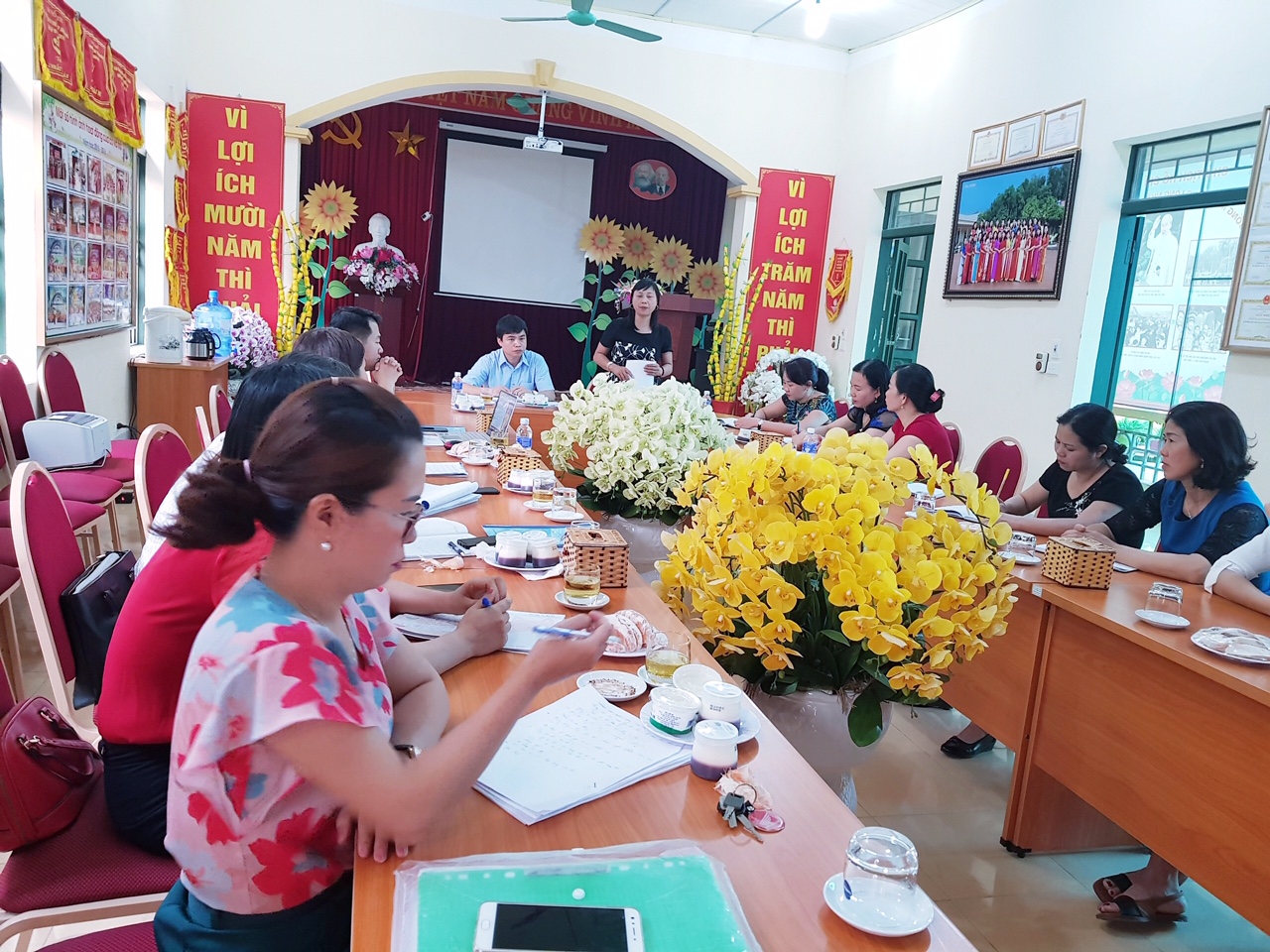 Tham dự buổi làm việc tại nhà trường có các đồng chí Nguyễn Tuấn Anh – Phó Trưởng phòng khảo thí và quản lý chất lượng giáo dục Sở Giáo dục Đào tạo – Phó trưởng đoàn kiểm tra đánh giá; đồng chí Nguyễn Hồng Ngọc , Đ/c Bùi Thị Hiền– Phó trưởng phòng Giáo dục và Đào tạo thành phố Điện Biên Phủ; các đồng chí là thành viên đoàn kiểm tra đành giá và đại diện cán bộ Quản lý, giáo viên trong nhà trường.