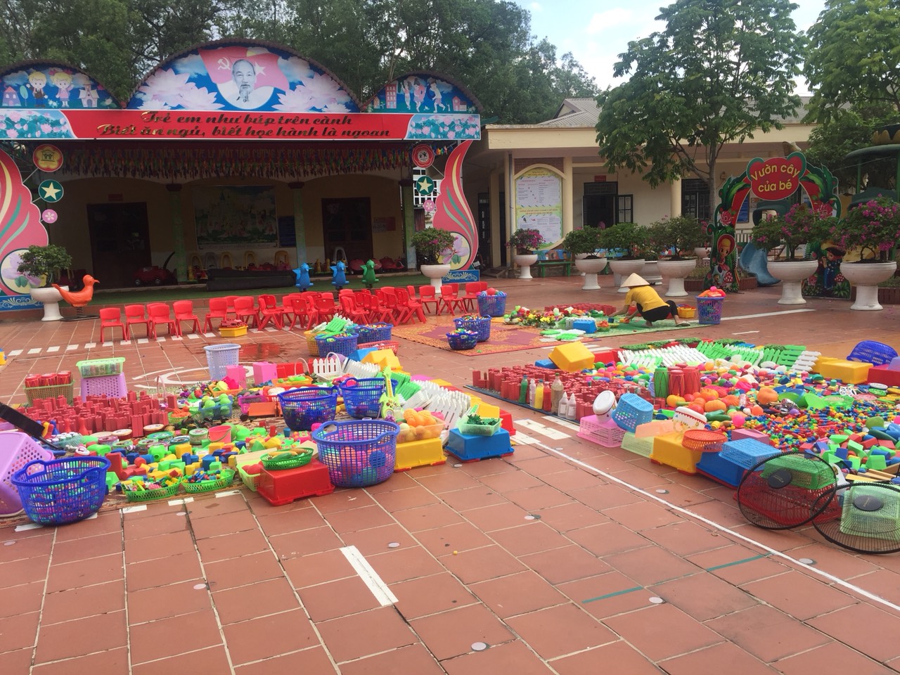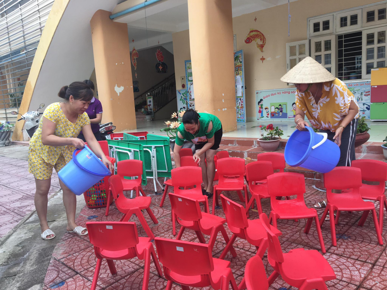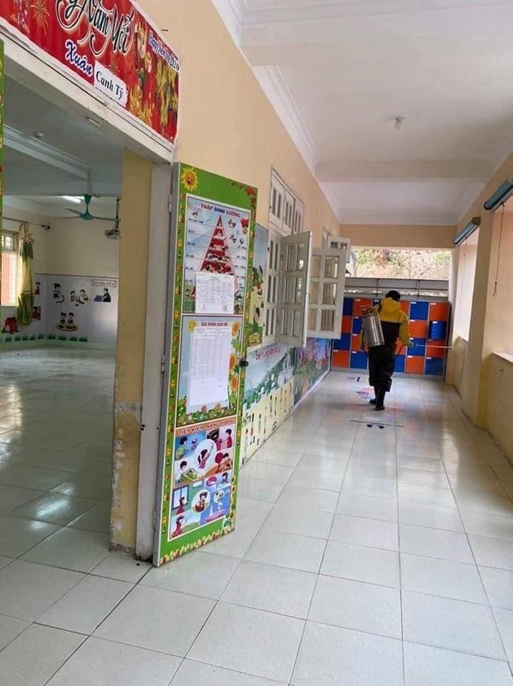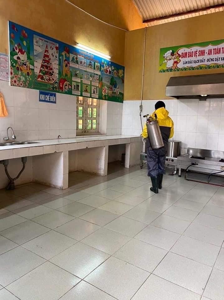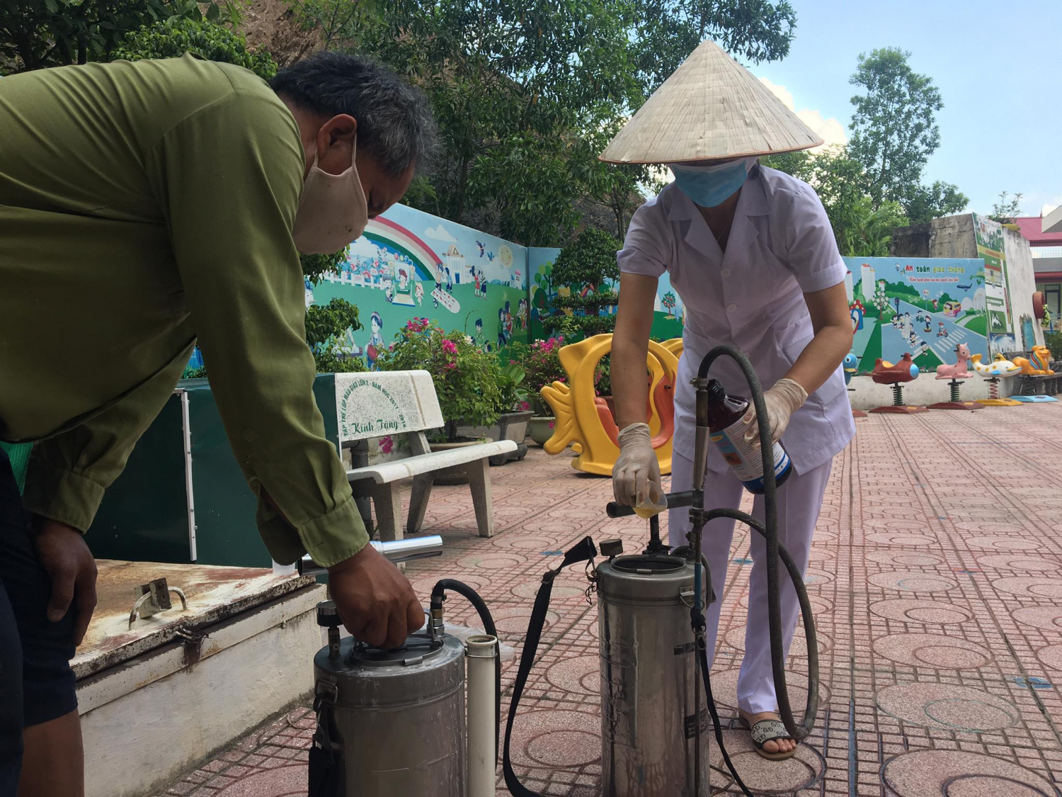 Nhà trường thực hiện cài đặt các ứng dụng phòng chống dịch bệnh COVID-19, chú trọng công tác vệ sinh môi trường, phun thuốc khử khuẩn phòng chống dịch bệnh, trang trí và tạo cảnh quan thông thoáng cho lớp học; định kỳ hàng tháng phát quan cây cỏ, khơi thông cống rãnh, hàng tuần các lớp tiến hành vệ sinh, khử khuẩn, tẩy rửa đồ dùng đồ chơi cho trẻ.