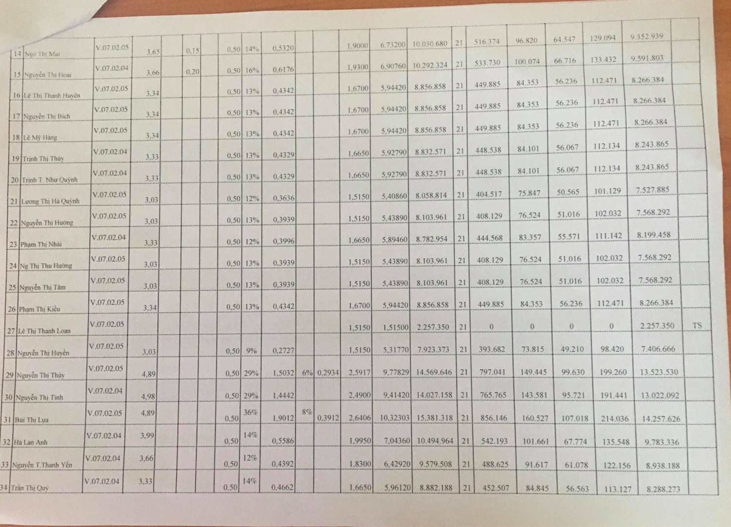 BẢNG CÔNG KHAI CHẾ ĐỘ TIỀN LƯƠNG THÁNG 8- 2020