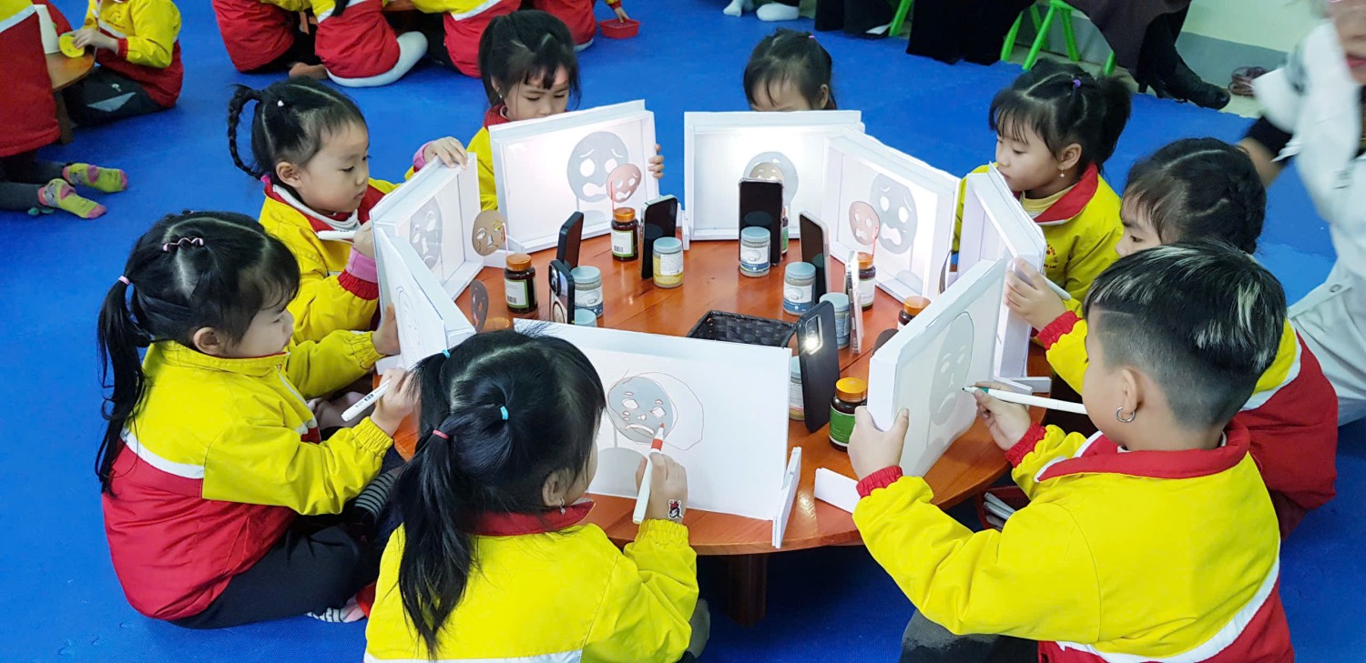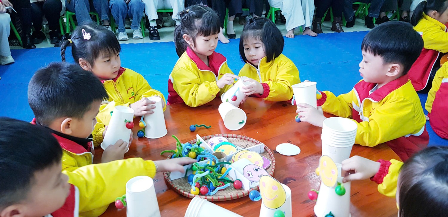 Ngay từ những phút đầu đón tiếp, các đại biểu đã có dịp tham quan môi trường giáo dục trong và ngoài lớp học tại Trường Mầm non 7/5. Với tư duy đổi mới, nhà trường đã sáng tạo, tạo nên một không gian học tập an toàn, thân thiện và kích thích sự sáng tạo của trẻ. Bầu không khí trở nên sôi động và đầy năng lượng với hoạt động thể dục sáng của các cô giáo, các cháu học sinh và các tiết mục văn nghệ chào mừng do các cô giáo cùng các em sinh viên thực tập biểu diễn. Tiếp theo các đại biểu được dự giờ 02 hoạt động tại trường: Hoạt động Giáo dục cảm xúc với đề tài “Muôn màu cảm xúc” - giáo viên dạy minh họa Đàm Thị Hạnh - Phạm Thị Hải Yến (Trẻ mẫu giáo 4-5 tuổi); Hoạt động trải nghiệm với đề tài “Làm cơm trộn, kimpab, cơm nắm muối vừng” - giáo viên dạy minh hoạ Nguyễn Thị Lời - Lê Thị Thơ (Trẻ mẫu giáo 5-6 tuổi).