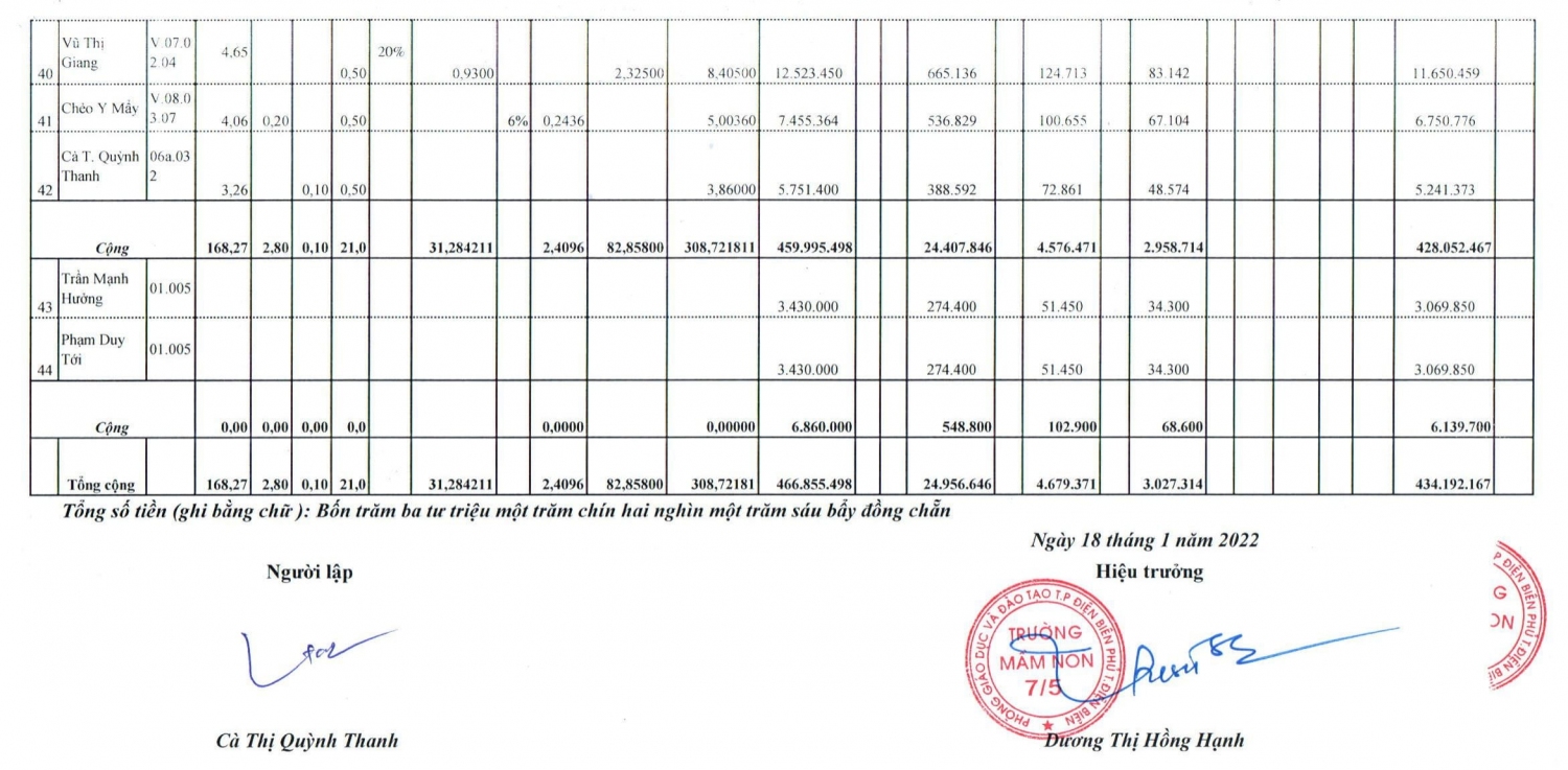 Trường mầm non 7/5 - Thành phố Điện Biên phủ thực hiện nghiêm túc việc chi trả chế độ chính sách tiền lương tháng 02/2022 đầy đủ, kịp thời cho cán bộ giáo viên nhân viên trong trường.