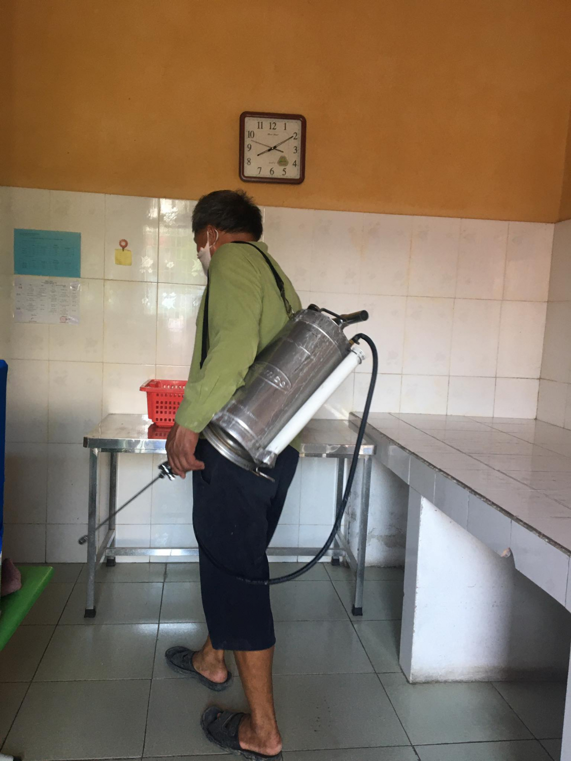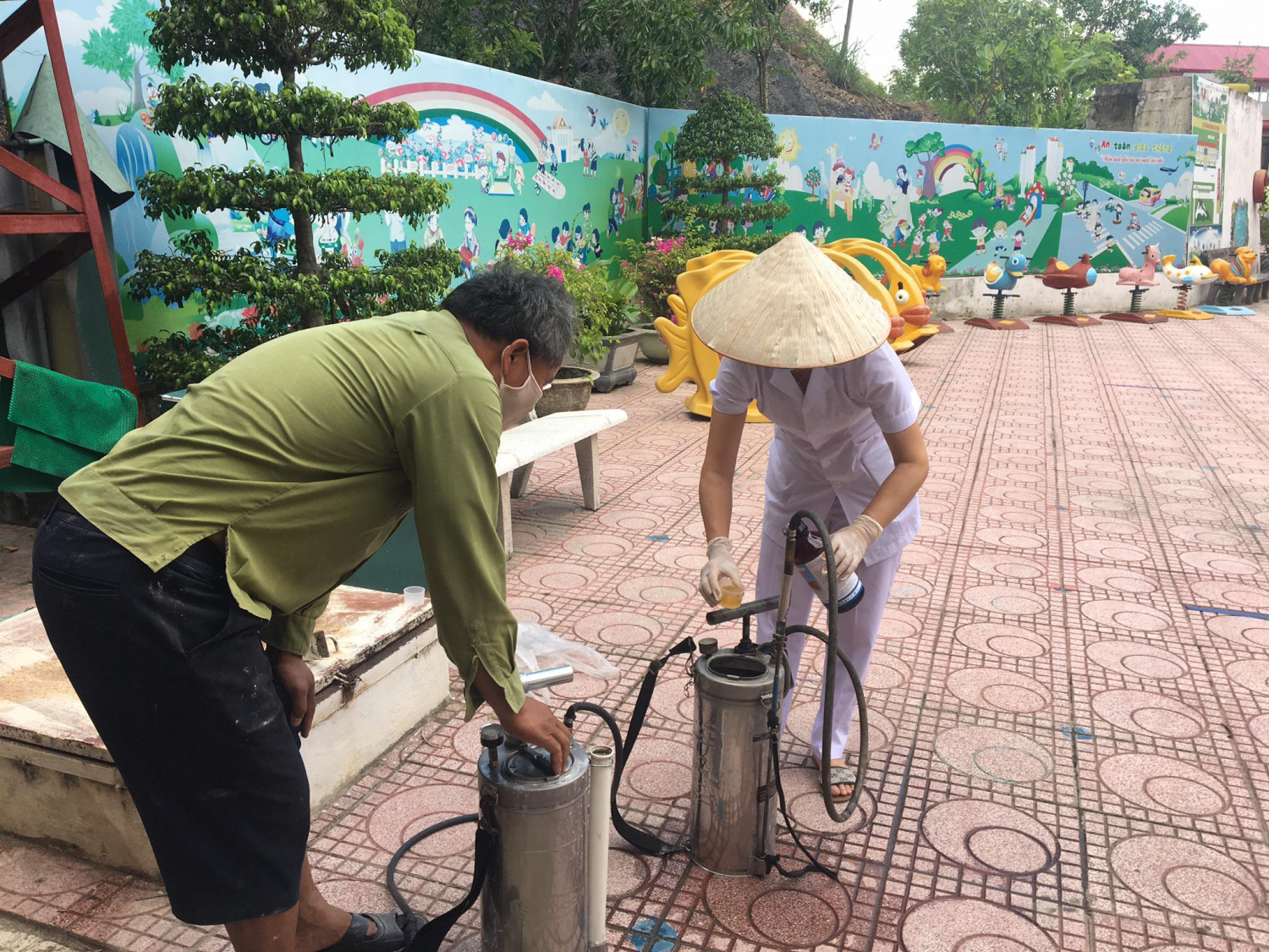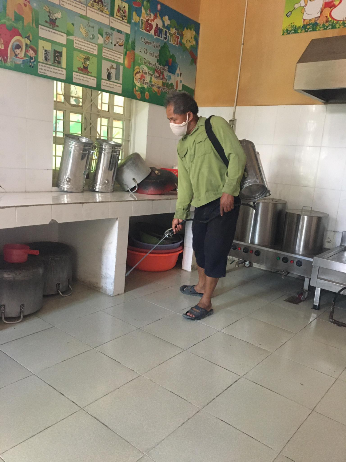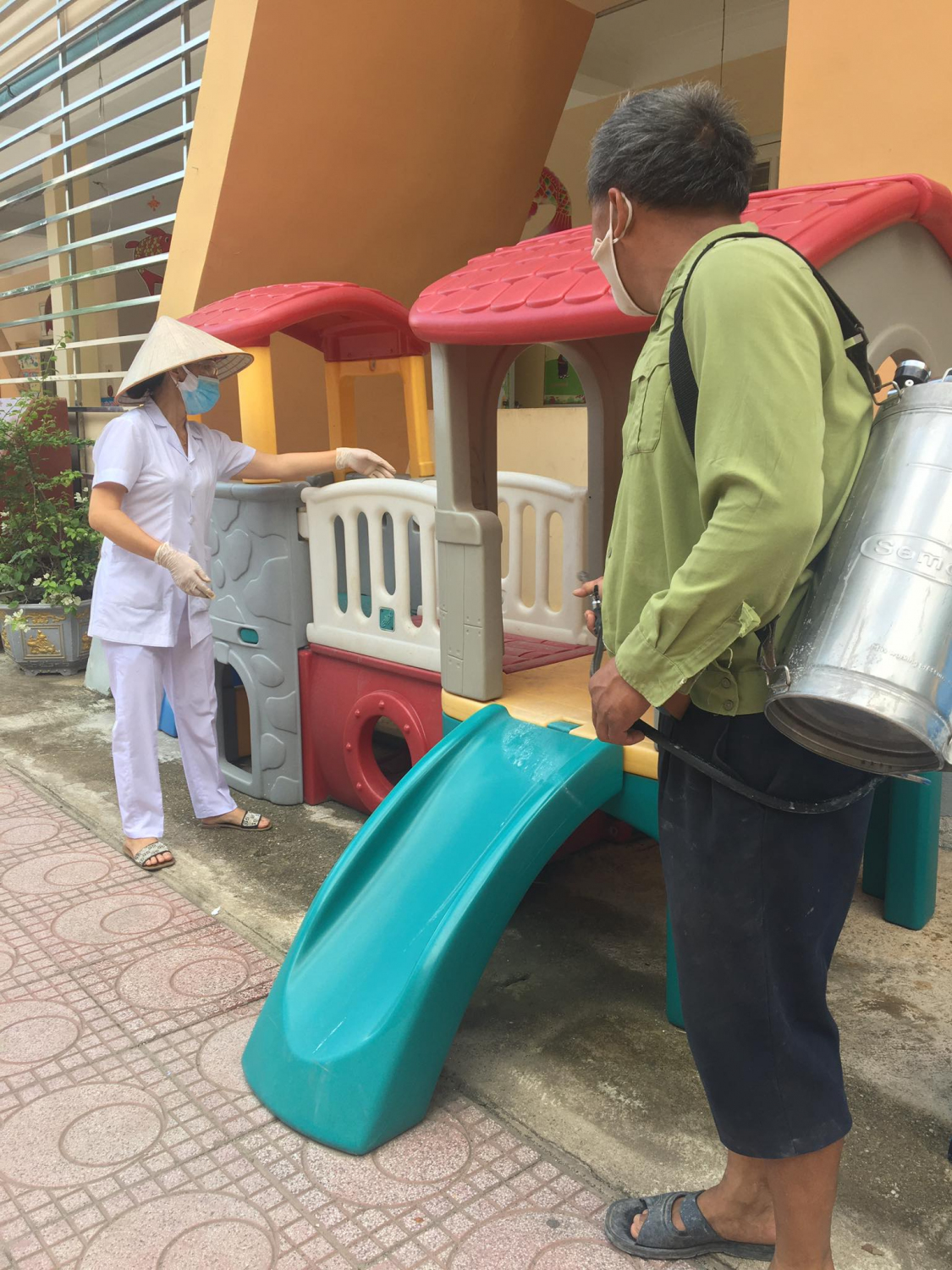 TRƯỜNG MN 7/5 PHUN THUỐC PHÒNG CHỐNG DỊCH MÙA HÈ CHO TRẺ
